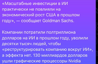 - ИИ не волшебная пилюля. Это долго, дорого и больно: о том, почему внедрение ИИ ради халявы оборачивается миллионными убытками. Реальная интеграция ИИ в бизнес — это не халява. Нужны вложения, кропотливая работа и много времени.