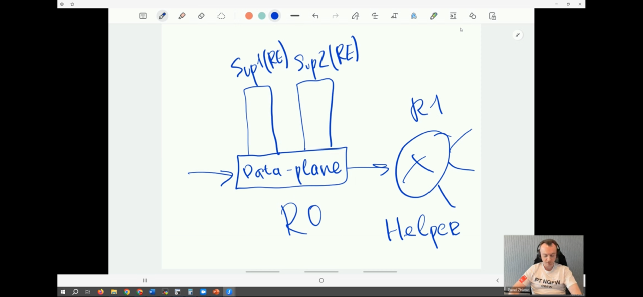 - Не совсем корректно с точки зрения таймаута (30 мин lsrefreshtime), но в целом проблематика ospf выглядит потенциально реальной на каналах с потерями, важно что lsa сгенерируется один раз, а hello в среднем три до dead, т.е. чтобы потерялся апдейт достаточно потери одного пакета, а для потери соседства должно потеряться 3 hello подряд: при потерях LSA в линии может до 60 минут указывать в живого пира, у которого уже упал канал до цели. И не переключать роутинг через резерв. Поэтому перешел на iBGP, уменьшив ему дистанцию и bgp timers.