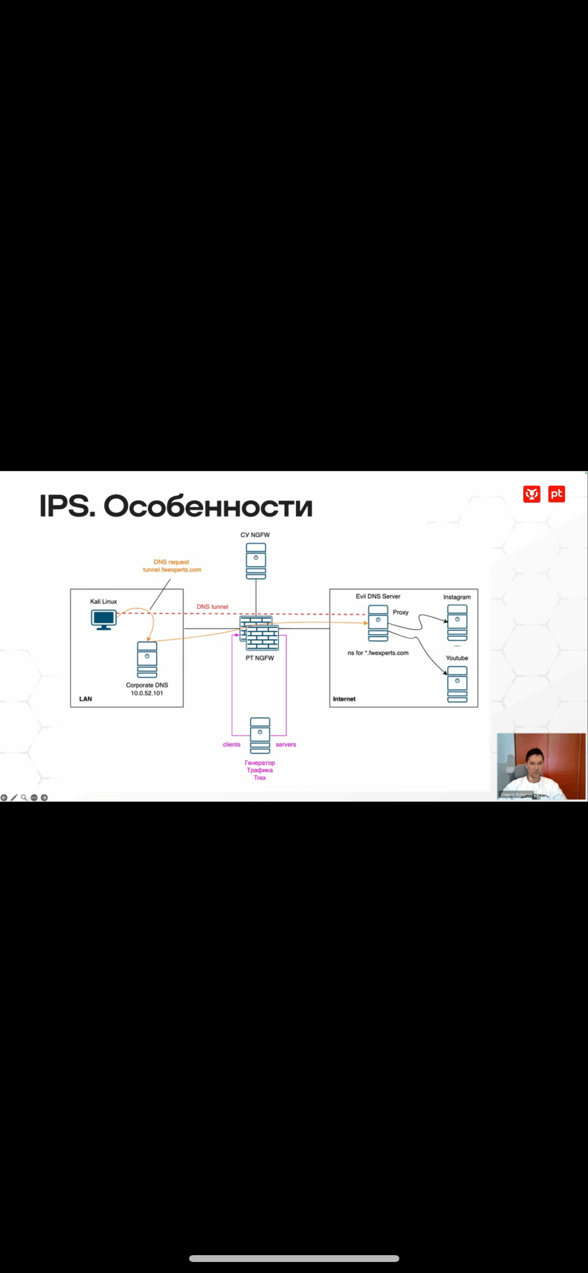 DNS tunneling – когда мы передаем поверх DNS что-то отличное от DNS трафика. Причем это не всегда (но чаще всего) злонамеренное поведение, DNS tunneling by design используется для ААА в аэропортах/отелях при получении доступа в интернет, при обновлении сигнатур антивируса.