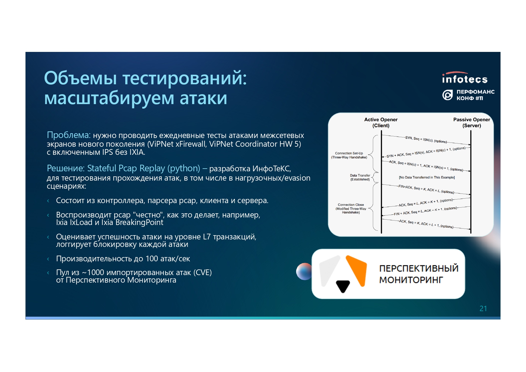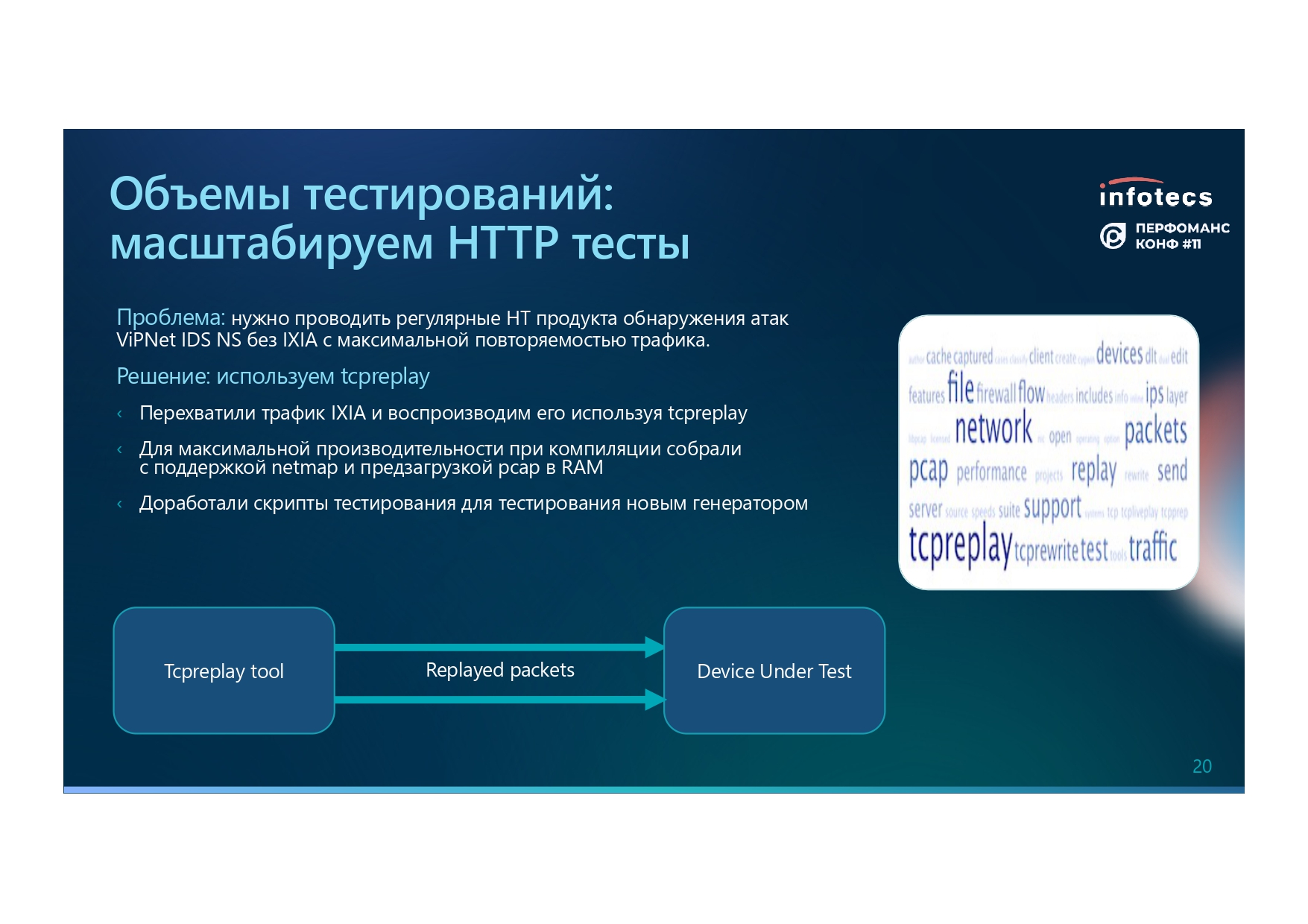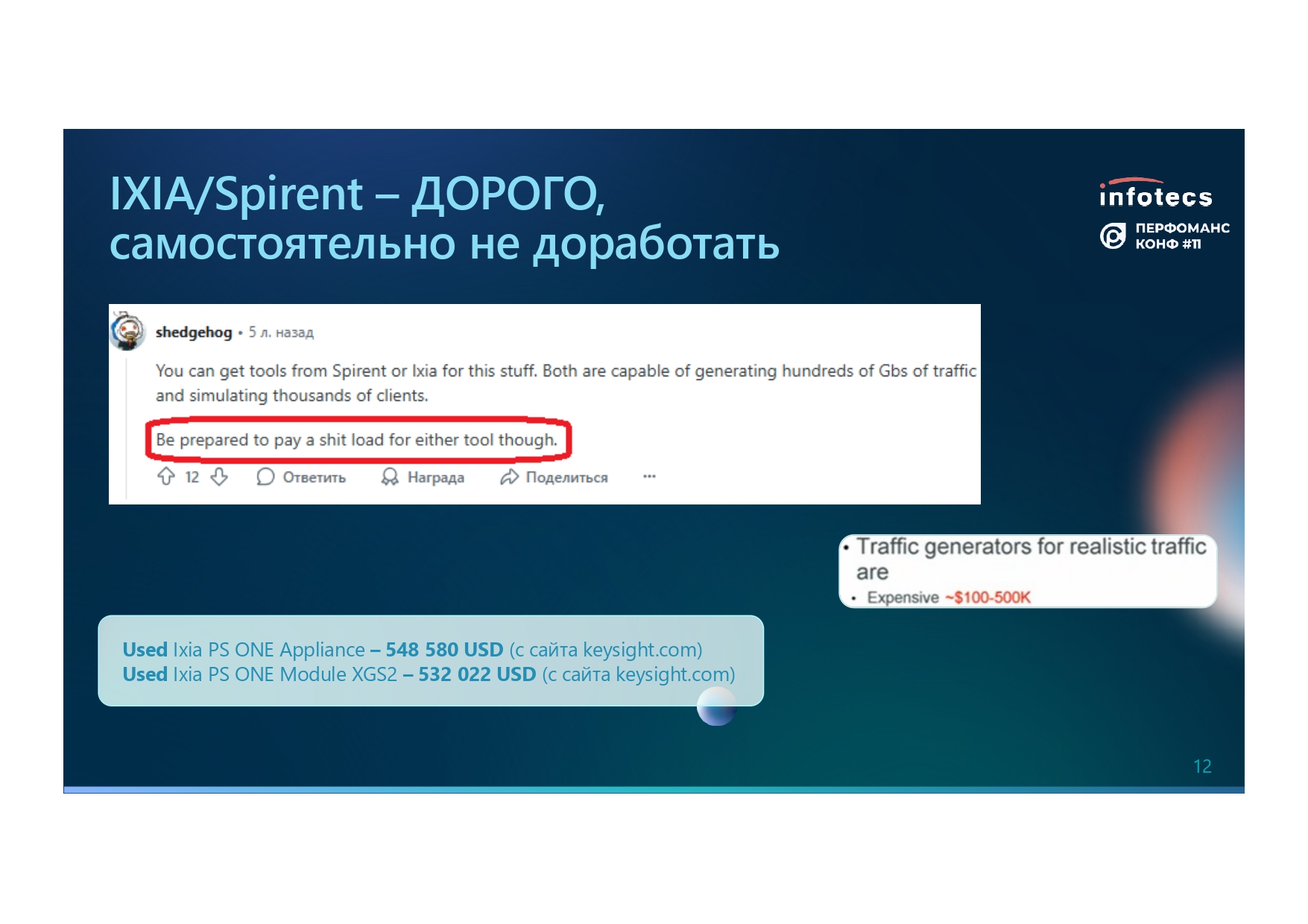Рад был рассказать о нашем опыте решения практических задач в области сетевого нагрузочного тестирования с использованием открытых решений и собственной разработки, который может быть полезен как референс для сообщества.